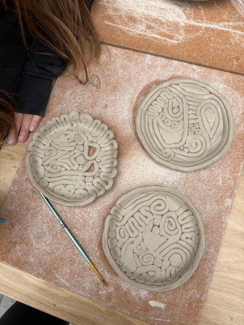 Daarna nemen we een korte pauze met iets lekkers, zodat de klei even kan uitharden. Vervolgens gaan we de onderzetters of bordjes glazuren.